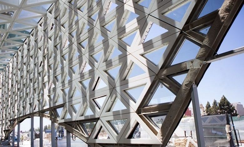 蓋尼特拉火車(chē)站立面尺寸達(dá)到6225㎡,大約由4275塊寬1.37米、高1.18米三角形形狀的UHPC面板組成。面板安裝好后,現(xiàn)場(chǎng)再組裝所有的木材和玻璃部件。通過(guò)三角形板塊的有機(jī)組合,UHPC板與玻璃幕墻交相呼應(yīng),組成了富有韻律、獨(dú)具特色的立面,儼然成為一道亮麗的風(fēng)景線。